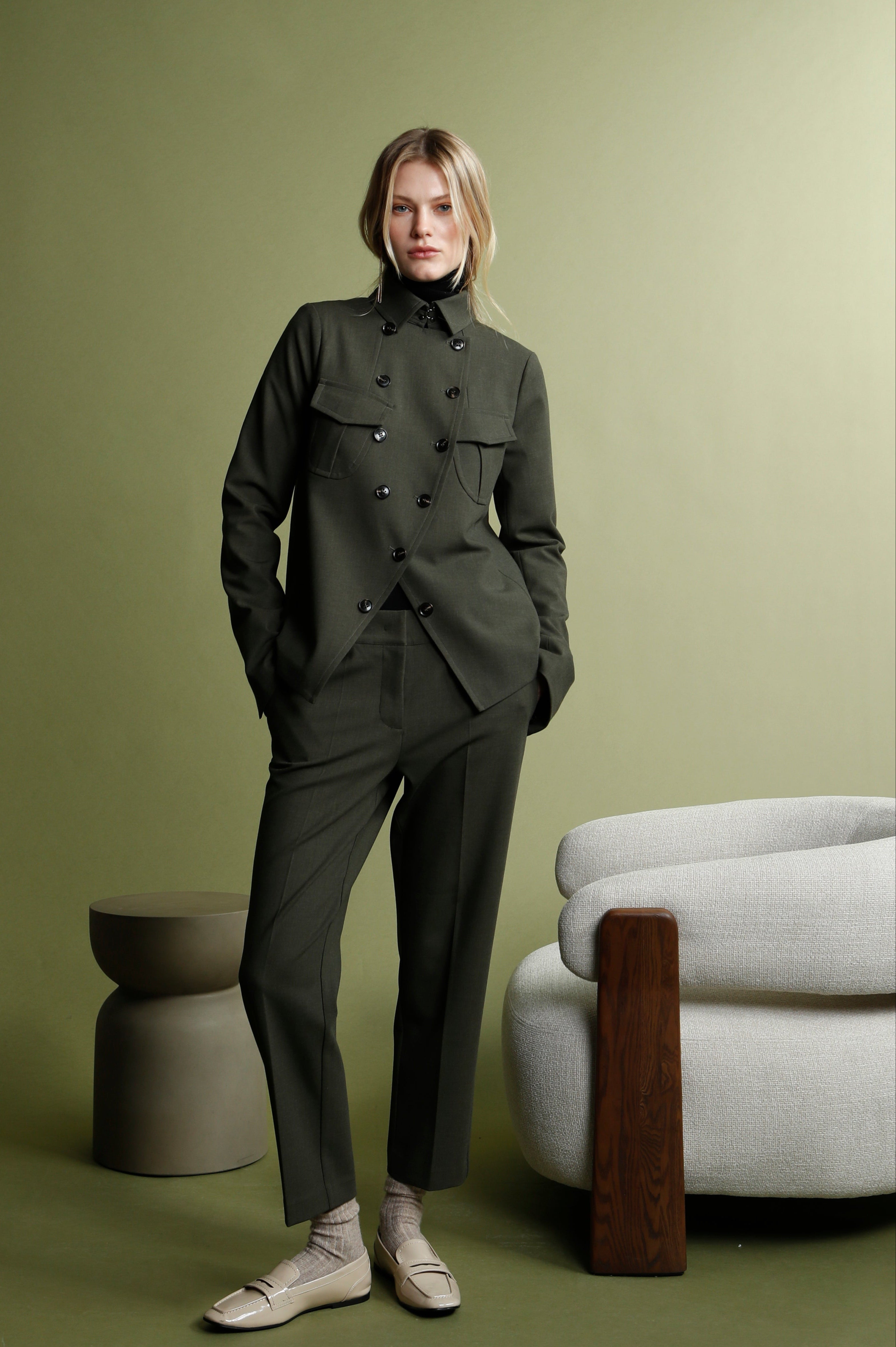 Ideal for those looking for a versatile garment with visual impact, the Double Line Officer Jacket adapts to both an elevated casual style and a more defined, editorial look.