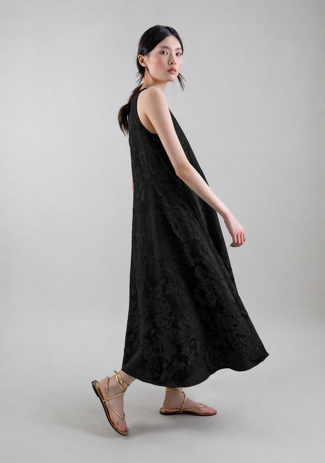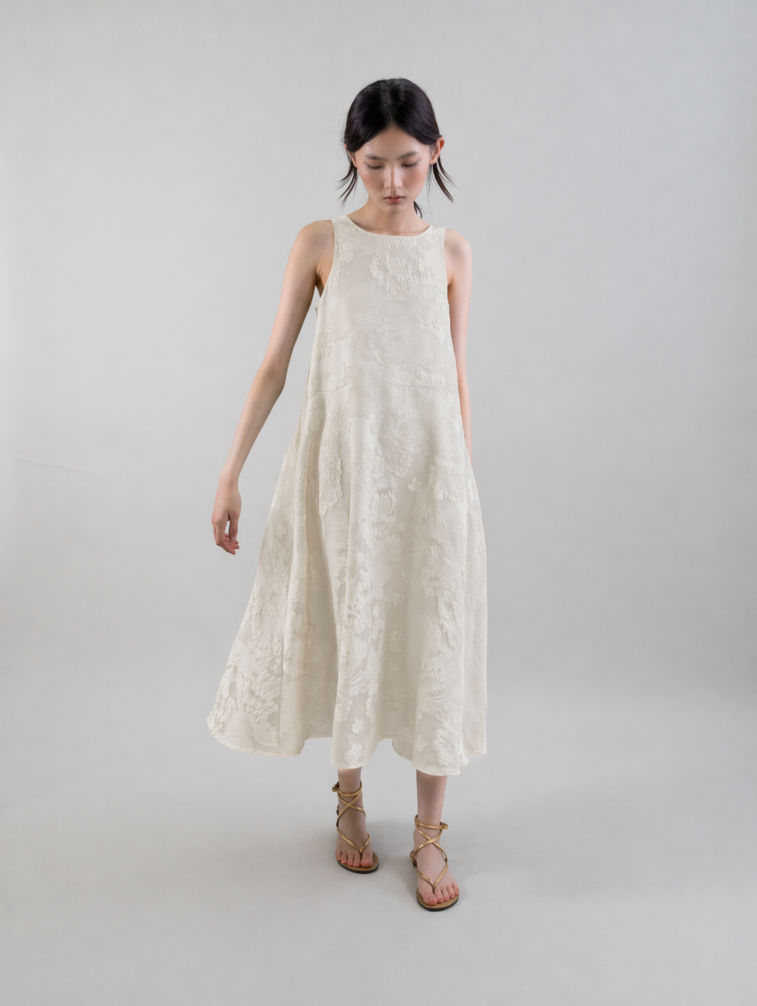 Light Jacquard Sleeveless Midi Dress