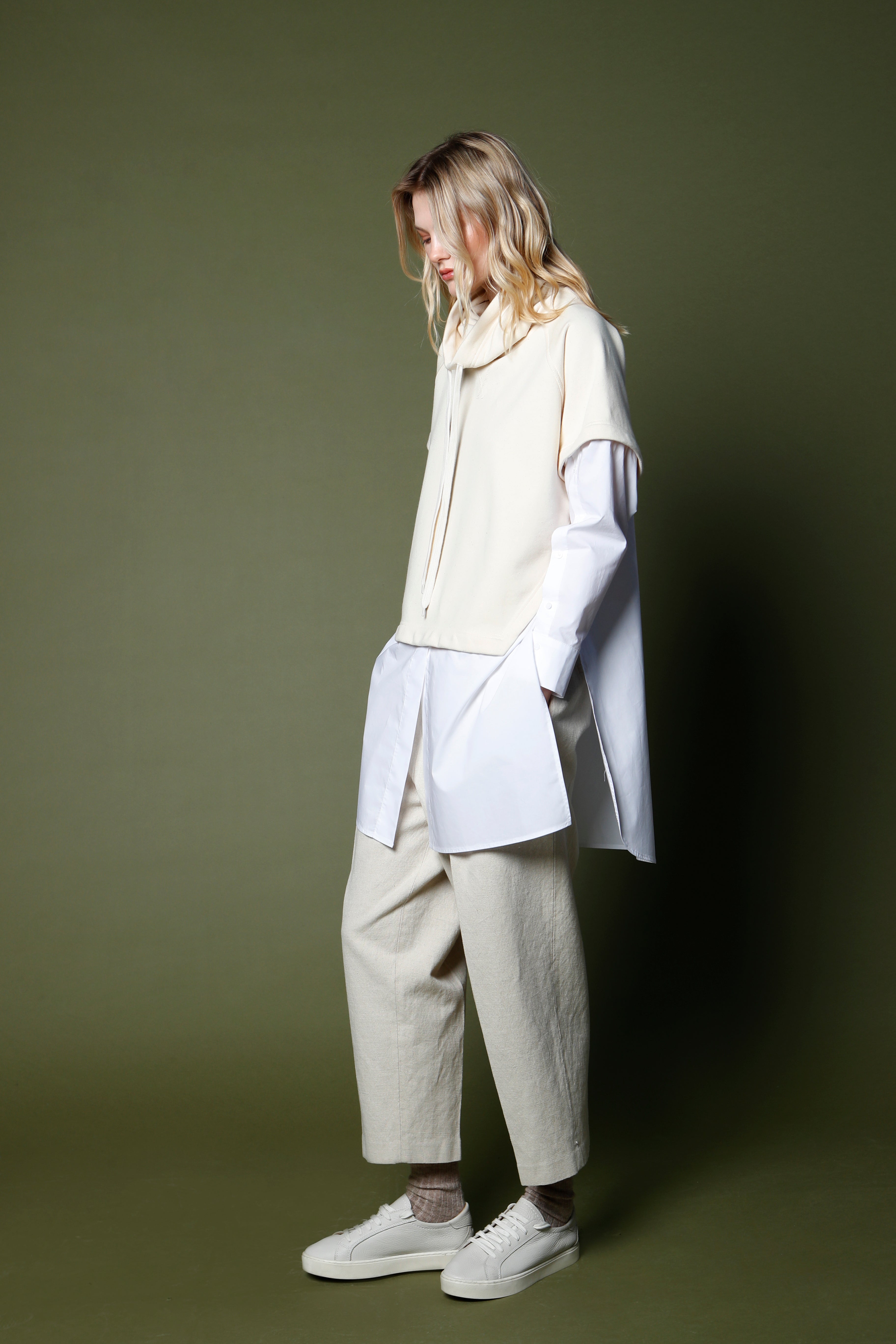 Diseñada para jugar con proporciones y contrastes, la Foldover Neck Tunic ofrece una interpretación contemporánea de la túnica clásica. Su silueta relajada se eleva con detalles inesperados que aportan carácter sin sacrificar comodidad.