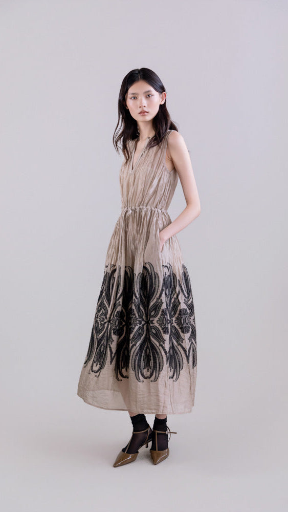 Sleeveless Dress with baroque damask print