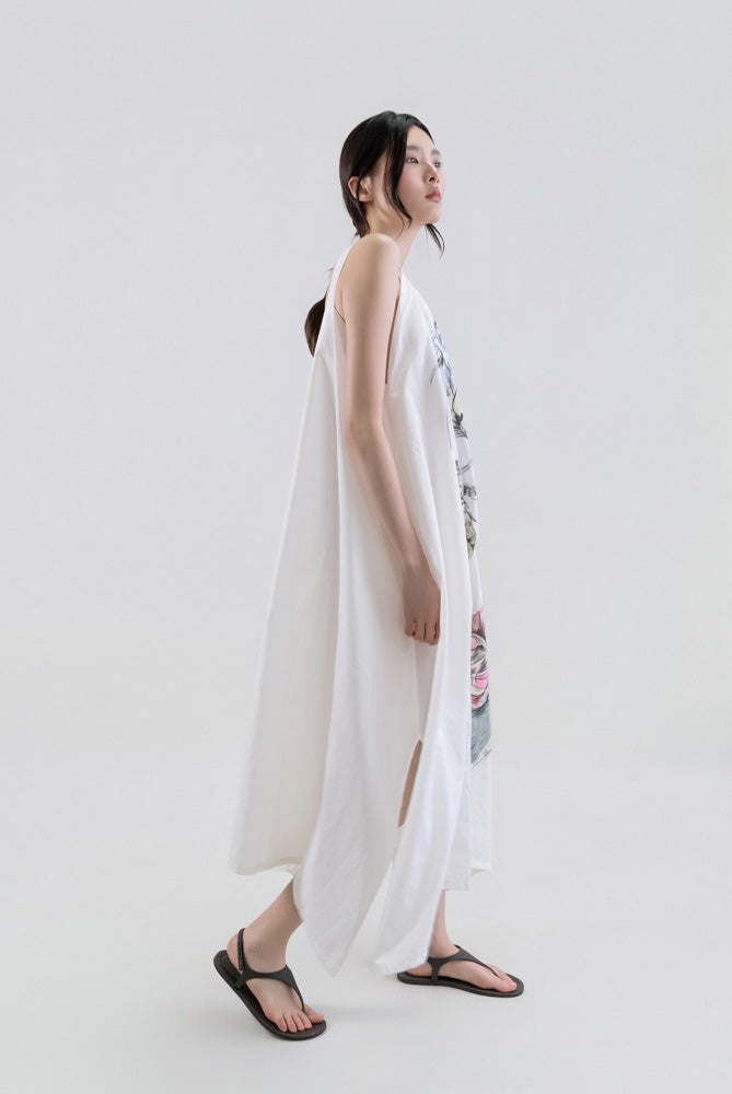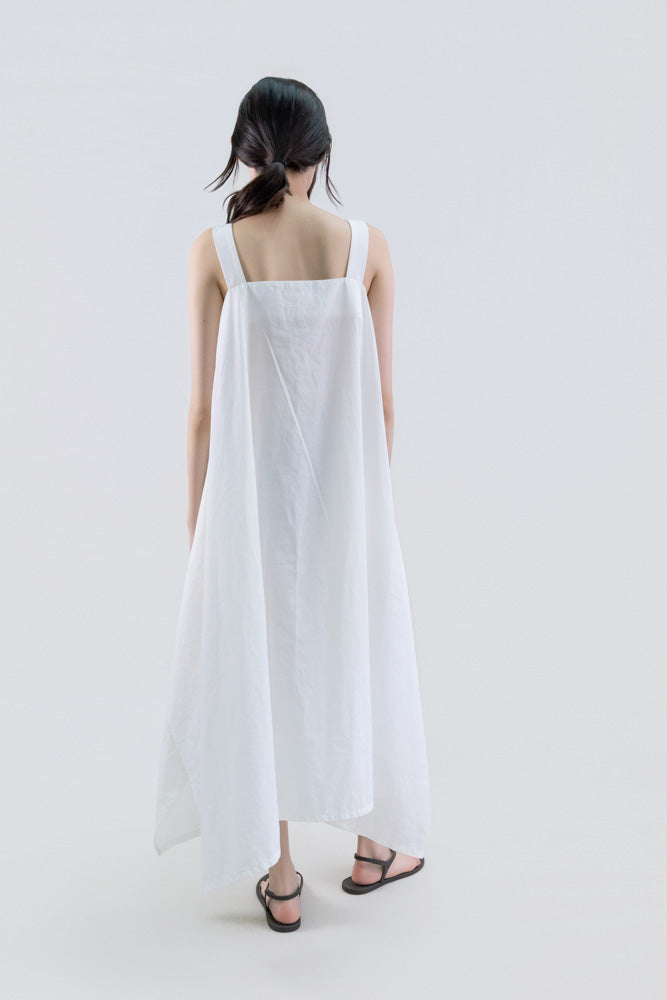 El Muted Peony Study Handkerchief Hem Fluid Dress presenta una silueta etérea que se adapta con suavidad al movimiento del cuerpo. Su frame neckline crea una estructura limpia y moderna, equilibrada por unos tirantes anchos que aportan presencia y soporte sin perder delicadeza.